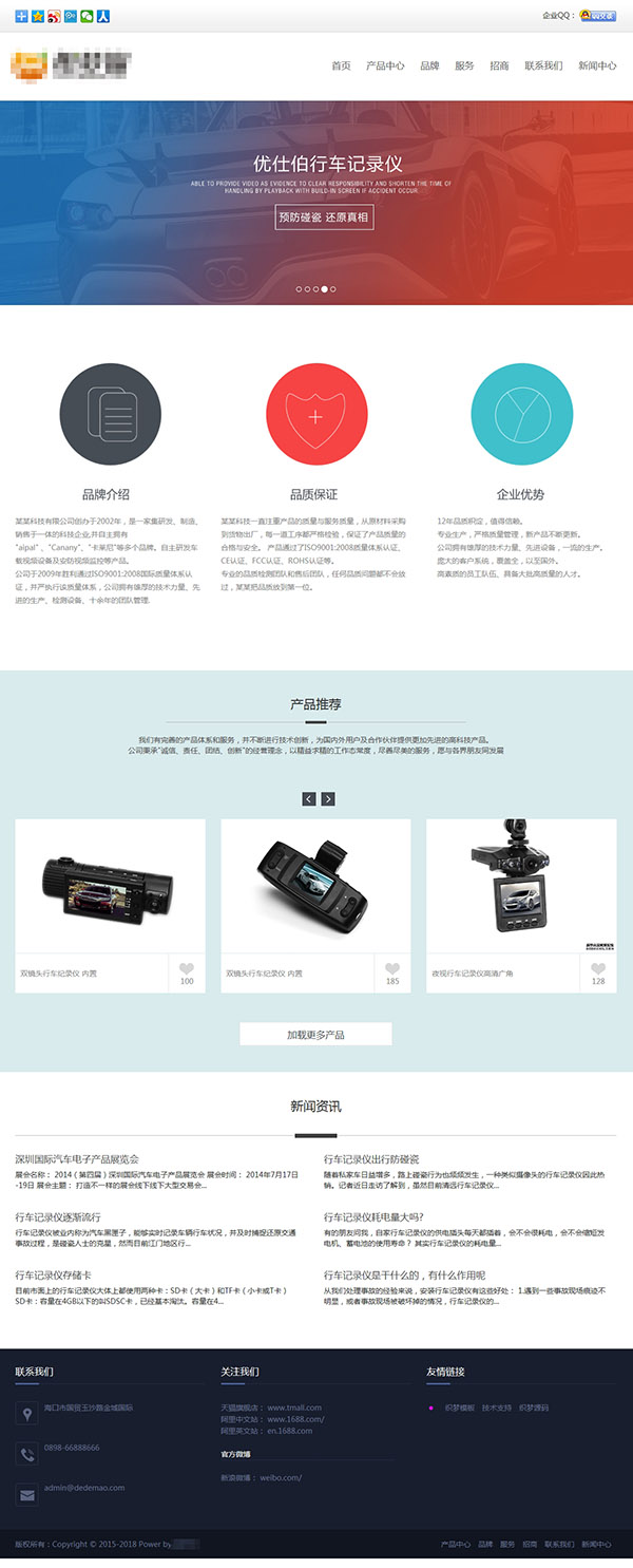 响应式简约行车记录仪类模板